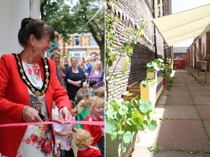 A new green space has been opened at Cylch Meithrin Grangetown a'r Bae for children and parents to enjoy.