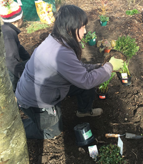 They helped prepare the ground, dug and checked the soil, as well as planted. According to Yin they were pleasantly surprised to discover that the soil is free draining sandy loam soil as opposed to clay. Clay would have made their tools sticky and their job a lot harder. Sandy loam, on the other hand, is easier to maintain andis better for the plants.