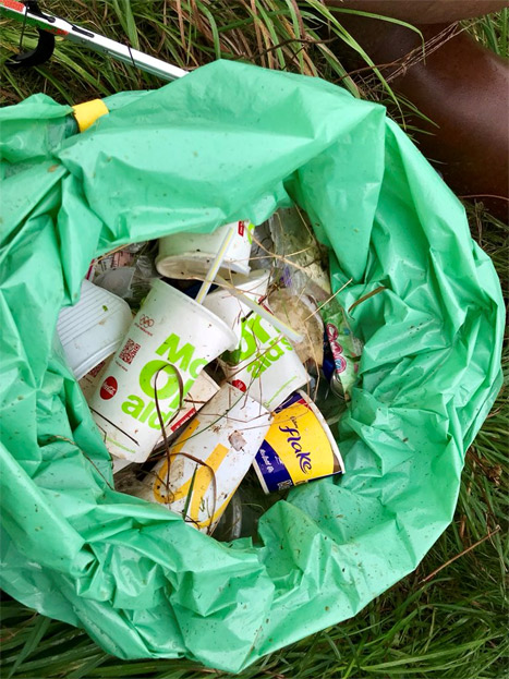 Litter discarded on the grounds of the retail park and on the nearby trail included a fair number of plastic cups from Costa and Macdonalds, as well as burger cartons, presumably thrown from vehicles.