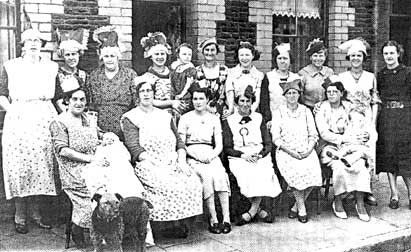 Mrs Cross is next to her then third from the left is Vena Mitchell. Mrs Legg is next to Vena. The woman last in the front row to the right, with the baby on her lap, is believed to be Mrs Buckland (nee Harrison). The girl in the black dress in the top row right hand side could be Rita Legg, whose mum is in the front row. Mrs Buckland’s sister Miss Harrison is in the back row, third in from the right with her hand on her sister's shoulder.
